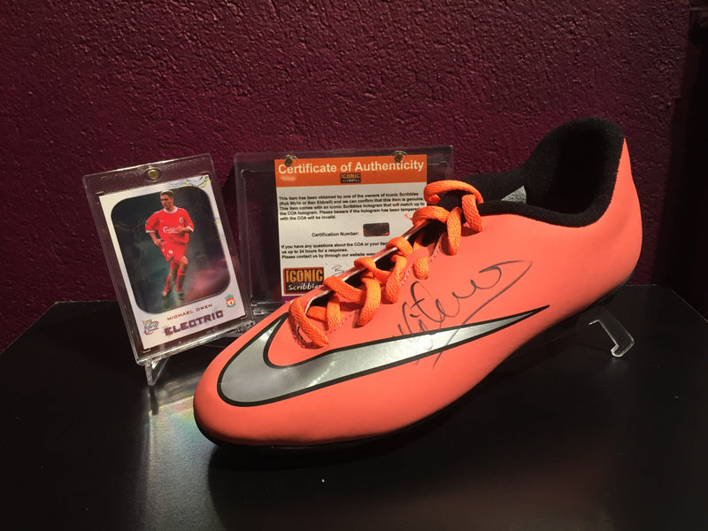 Alle våre signerte sko har COA – som er et ektehetsbevis på at det er det er selve spilleren som har signert, dette medfølger selvfølgelig.